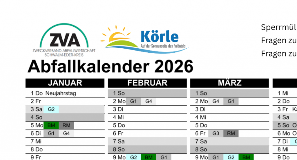 Der Abfallkalender fürs Jahr 2026 ist ab jetzt verfügbar. Ausgedruckte Exemplare gibt’s im Rathaus – auf Wunsch auch im gut leserlichen A3-Format. Außerdem gibt’s den Kalender hier zum Download.