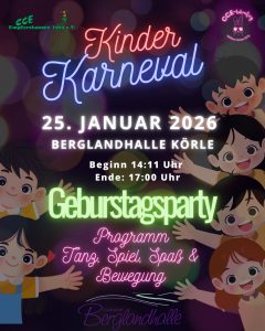 Der CCE Empfershausen feiert Kinderkarneval. Am Sonntag, 25. Januar steht deshalb die Berglandhalle unter dem Motto „Geburtstagsparty“. Auf dem Programm stehen Tanz, Spiel, Spaß und Bewegung. Los geht die bunte
