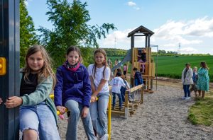 Endlich kann auf dem Spielplatz Hollunder wieder so richtig getobt, gespielt und geklettert werden Die Kinder der dritten Klassen waren zur Eröffnung eingeladen und probierten die neuen Geräte natürlich ausgiebig