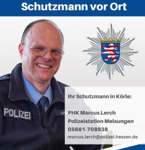 Bei jeglichen Themen rund um Polizei und Sicherheit steht Schutzmann vor Ort Marcus Lerch in Körle als direkter Ansprechpartner zur Verfügung. Die nächste Sprechstunde findet am Mittwoch, 21. Mai von