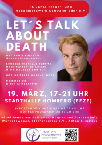 Das Trauer- und Hospiznetzwerk Schwalm-Eder gibt es nun seit 15 Jahren. Deshalb lädt der Verein für Donnerstag, 19. März, 17 Uhr zu einem unterhaltsamen Info-Abend nach Homberg ein. Programmübersicht 17.00-18.30