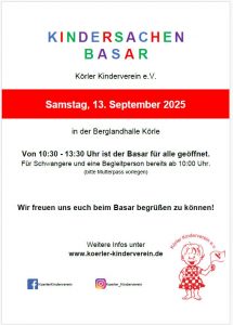 Der Körler Kinderverein lädt zum Kindersachenbasar ein. Dieser findet am Samstag, 13. September von 10.30 bis 13.30 Uhr statt.