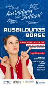 Du suchst eine Ausbildung, ein Praktikum oder einen Studienplatz? Dann ist die kostenlose Ausbildungsbörse Schwalm-Eder am 23. August genau das Richtige für dich! Über 100 Unternehmen präsentieren ihre vielfältigen Möglichkeiten